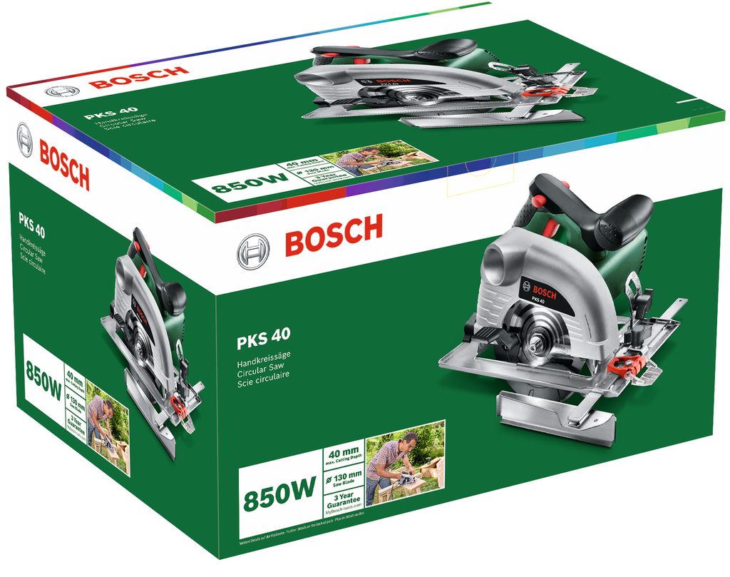 Bosch PKS 40 se hodí pro přímé i šikmé řezy v běžných deskových materiálech a dřevě – skvělé pro zkracování prken, OSB desek, laminovaných desek a další projekty v dílně nebo při rekonstrukci.