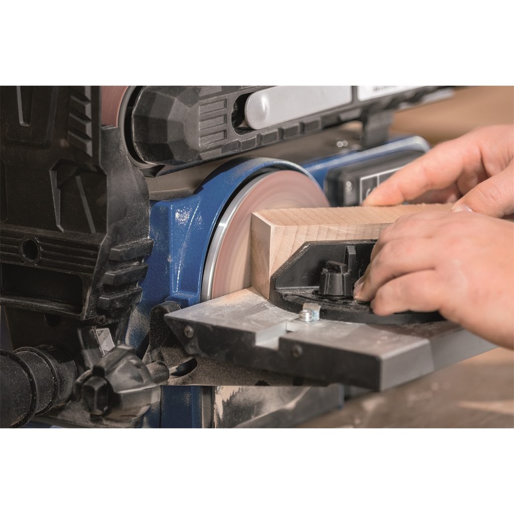 Multifunkční bruska Scheppach BTS 900 kombinuje brusný pás a kotoučovou brusku, díky čemuž si poradí se všemi brusnými úkoly ve vaší dílně. Brusný papír na kotoučovou brusku se upevňuje snadno pomocí suchého zipu. Velkou výhodou je, že kotoučová bruska nepřesahuje přes hranu brusného pásu, což umožňuje pohodlné broušení i velkých ploch na pásu. Výsledky broušení jsou díky tomu vždy precizní.