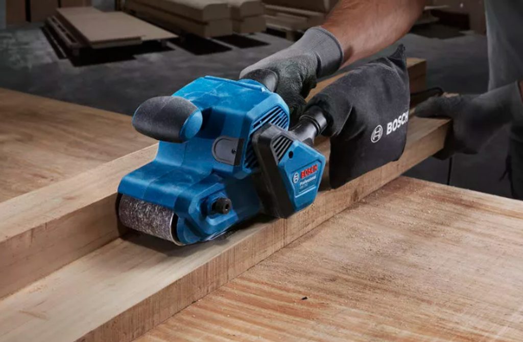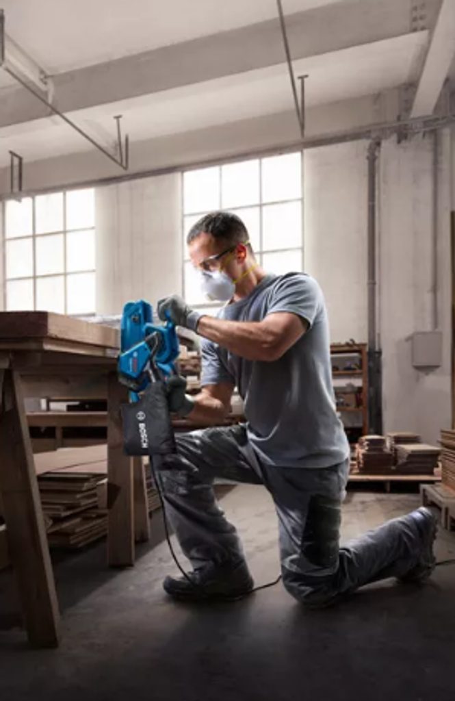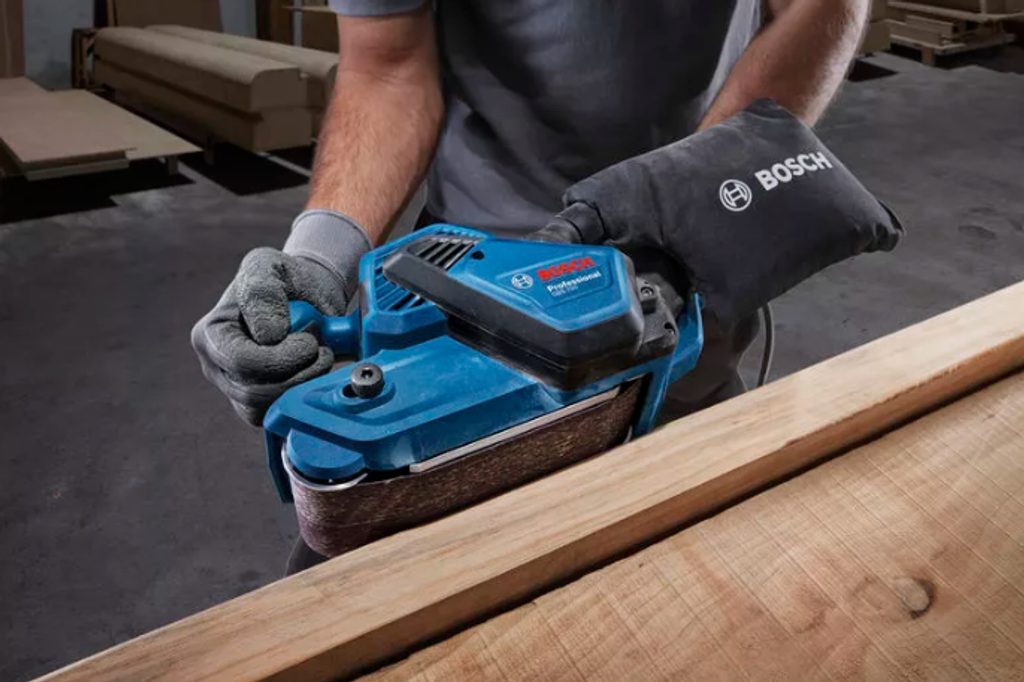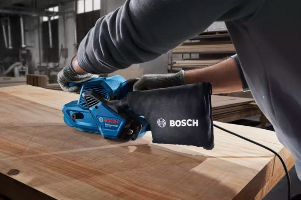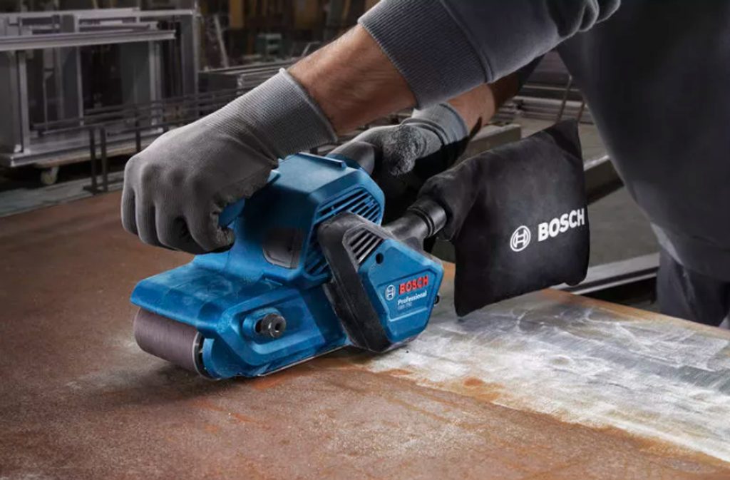 Elektrická pásová bruska Bosch GBS 750 se pyšní vynikajícím úběrem materiálu díky silnému 850W motoru, což výrazně zkracuje dobu broušení. Tento motor umožňuje efektivní a rychlou práci při broušení různých povrchů. Používání této pásové brusky je mimořádně pohodlné díky ergonomickému designu úchopu, který zajišťuje komfort i při delší práci.