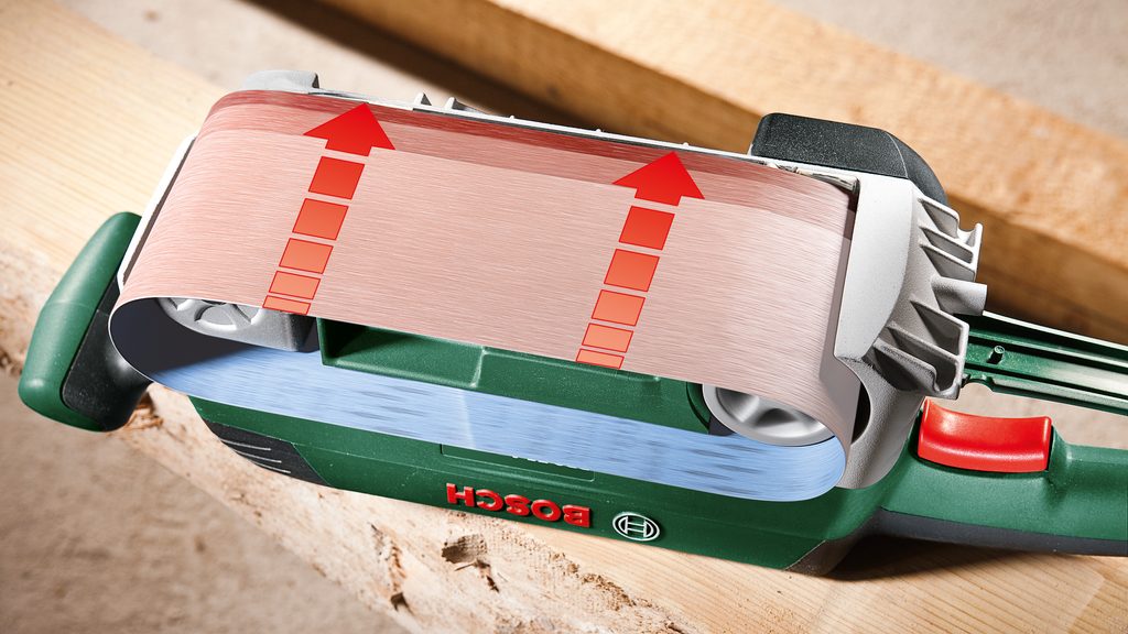 Kompaktní konstrukce s odnímatelnou přídavnou rukojetí poskytuje optimální ovladatelnost při práci. Praktický automatický pásový systém se stará o správné vystředění brusného pásu během používání, takže odpadá nutnost neustálého seřizování.