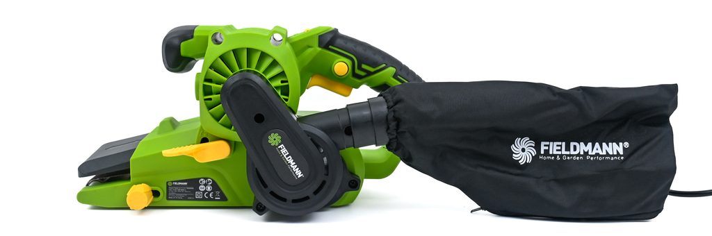 Pásová bruska značky FIELDMANN je ideální pomocník pro zpracování obrobků ze dřeva, kovu, betonu nebo kamene. Výměna brusného papíru je nejen rychlá ale též snadná. Zbroušený materiál má připravené místo v prachovém sáčku.