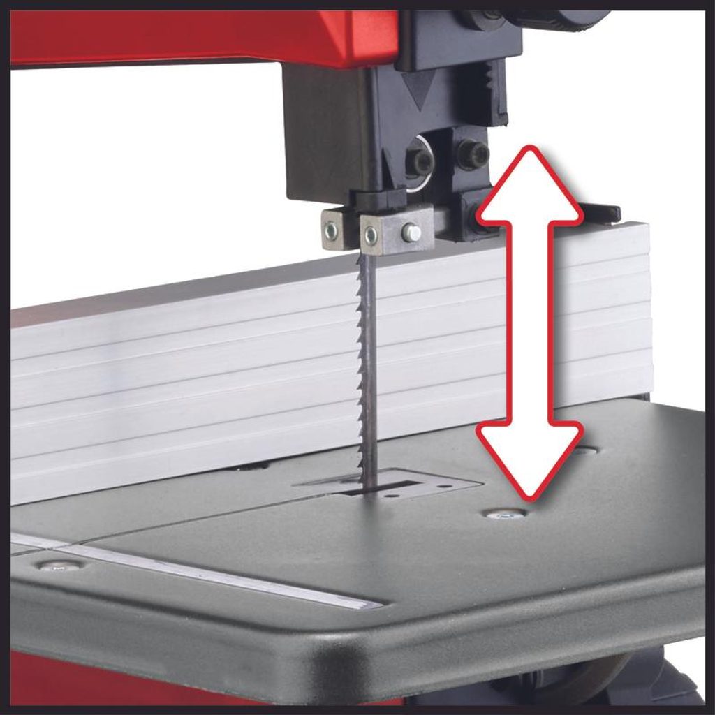 Výkonný 250W motor zajišťuje plynulý chod a dostatečnou rezervu výkonu, zatímco úzký prořez šetří materiál i energii. Výškové nastavení pily umožňuje přizpůsobit stroj konkrétnímu obrobku, což zvyšuje jak přesnost, tak bezpečnost a komfort při řezání.