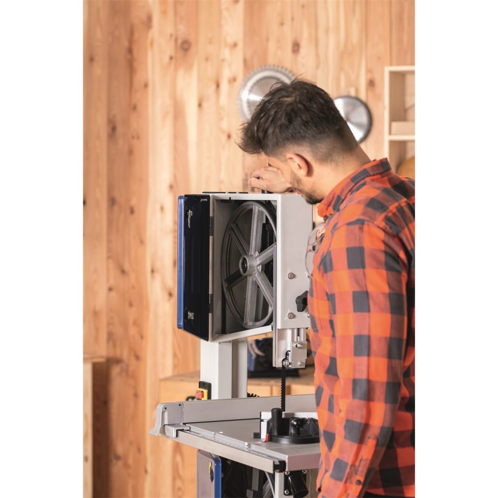 Díky nastavení rychlosti pásu a velmi silnému motoru, můžete pracovat s rozličnými materiály – měkké či tvrdé dřevo, polystyren, plast ap. Možnost připojení odsávání se výrazně potlačí prašnost ve vaší dílně. Pro ještě příjemnější práci v ideální výšce je stroj standardně vybaven pevným ocelovým podstavcem.