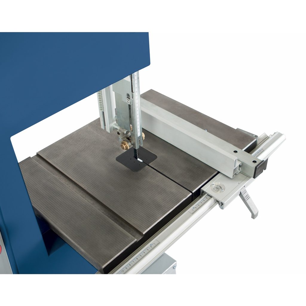 Velmi přesné pravítko, vybavené zvětšovacím sklem pro lepší čitelnost měřítka, lze uchytit z obou stran pilového pásu. Pila se vyznačuje vynikajícími hodnotami řezné výšky a šířky, které činí 205 mm a 306 mm. Pásová pila je rovněž vybavena konektorem pro připojení odsavače pilin a robustním stojanem s kolečky a výsuvnou pákou pro snadný transport.