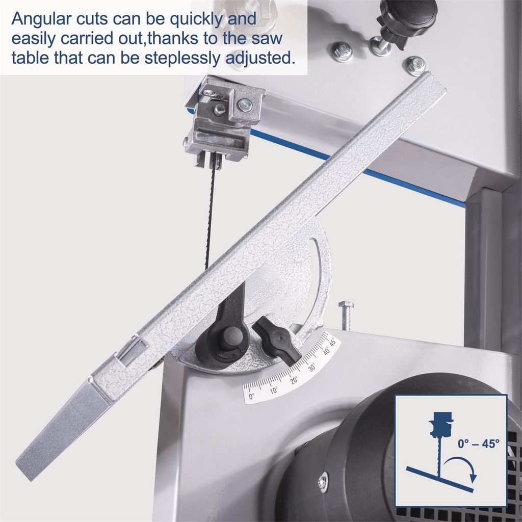 Kompaktní rozměry činí tento stroj ideální volbou pro menší dílny, kde je potřeba ušetřit místo, ale zároveň umožňují snadnou manipulaci a přepravu. Pila je v základně vybavena otvory pro pevné přichycení k pracovní desce, prachotěsným bezpečnostním spínačem, tlačnou tyčí a úhlovým pravítkem. Pila je kompatibilní s běžnými pilovými pásy o šíři 7 až 12 mm.