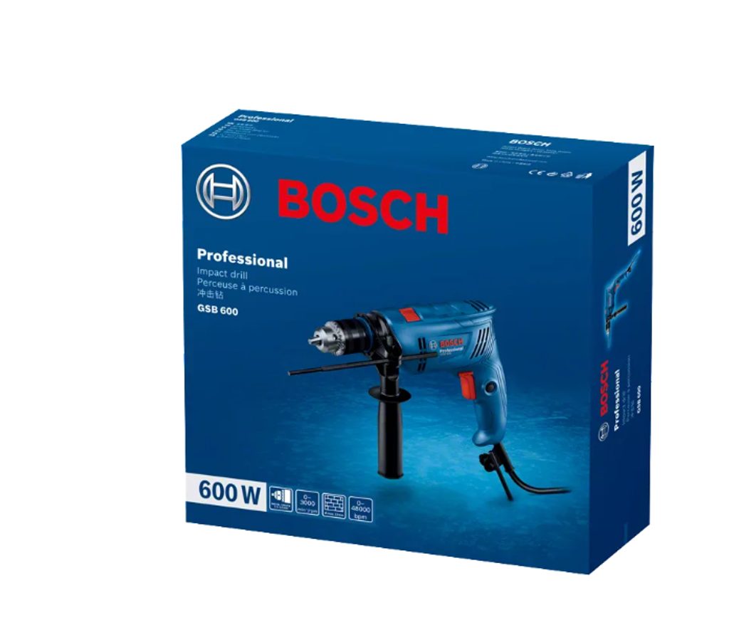 Elektrická příklepová vrtačka Bosch GSB 600 je určená pro široké spektrum pracovních činností. Vysoce účinný a robustní motor s výkonem 600 W zajišťuje vynikající výkon i při náročném nasazení. Díky tomuto vylepšenému motoru je práce efektivnější a rychlejší.
