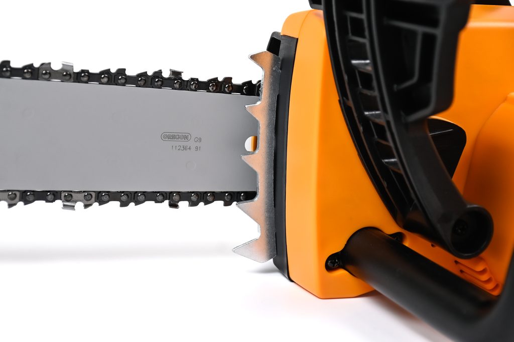 Značkový řetěz Oregon spolu s vysokou rychlostí řetězu znamená rychlý a čistý řez poslední generace. Snadného napínání řetězu bez použití nářadí docílíme kruhovým ovladačem na boku. Piliny jsou odváděny do boku, takže nelétají na obsluhu a rovněž motor je tak mnohem lépe chráněn proti nasávání prachu.