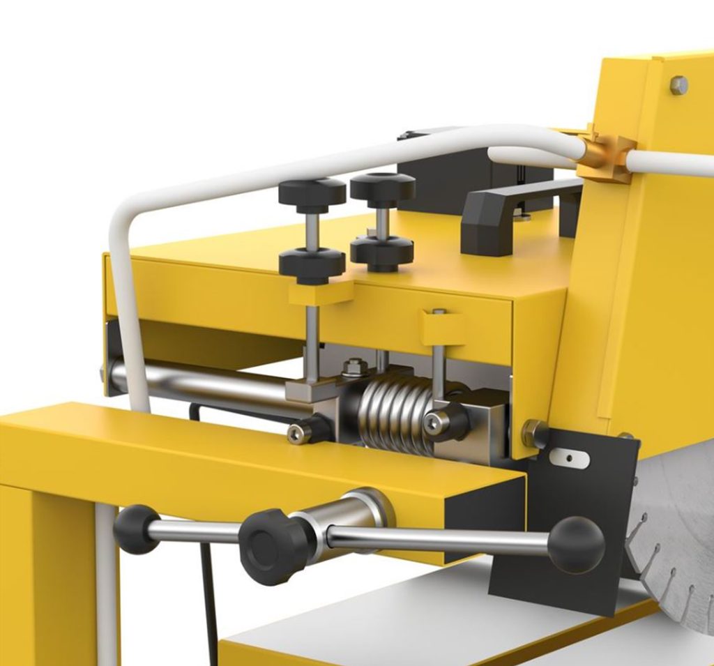 Díky podvozku s kuličkovými ložisky je manipulace s řezačkou snadná a pohodlná, což oceníte zejména při častém přemisťování. Sklopné nožičky s pružinovou oporou zajišťují kompaktní skladovací rozměry, což usnadňuje přepravu i úsporu místa při skladování. Přesné nastavení úhlu řezu pomocí excentrického šroubu vám umožní dosáhnout dokonalých výsledků při každém řezu.