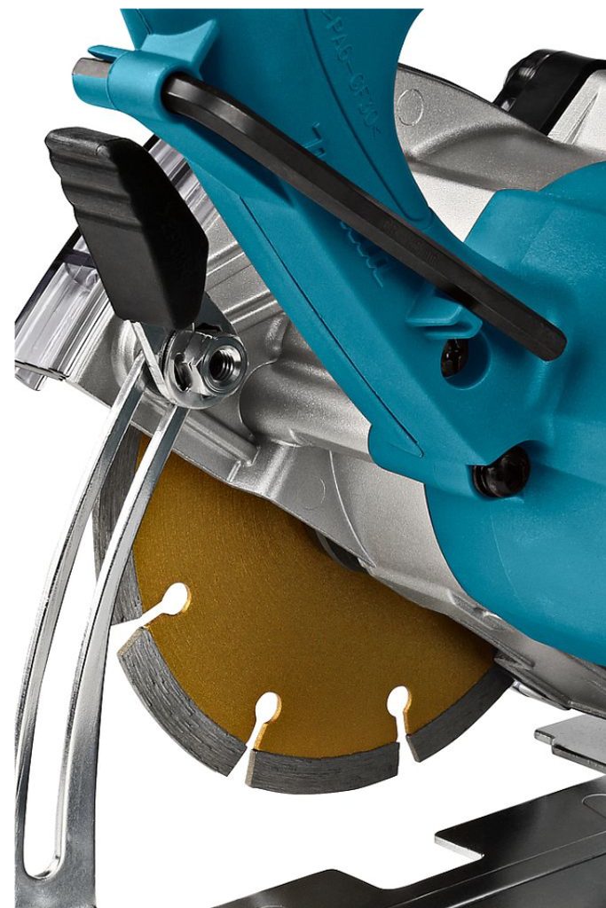 Řezačka Makita s diamantovým kotoučem vhodná pro řezání cihel, betonových desek, protipožárních desek, mramoru, žuly atd. Řezačka disponuje vakem na prach (66% ve vaku, až 91% po napojení na externí vysavač).
