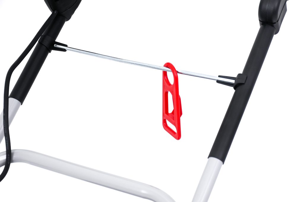 Díky aerodynamickému tvaru těla sekačky a velkému vyhazovacímu otvoru je posečená tráva efektivně sesbírána a sběrný koš o objemu 37 litrů optimálně naplněn. Práci dále zpříjemňuje signalizace naplnění koše a praktické madlo usnadňující vysýpání koše. Velké madlo pro snadné přenášení sekačky pomáhá při překonávání překážek, sklopné držadlo potom umožňuje úsporné skladování sekačky bez velkých nároků na prostor.