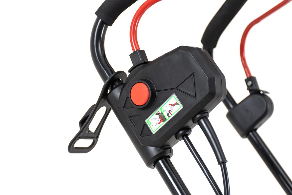 Šasi sekačky je odolné vůči UV záření a umístění kol umožňuje sekání i blízko stěn a obrubníků. Díky integrovanému držáku na sekačce bude její přenášení snadné a praktické. Sekačka disponuje funkcí světelné signalizace po zapojení do sítě pro lepší přehlednost.