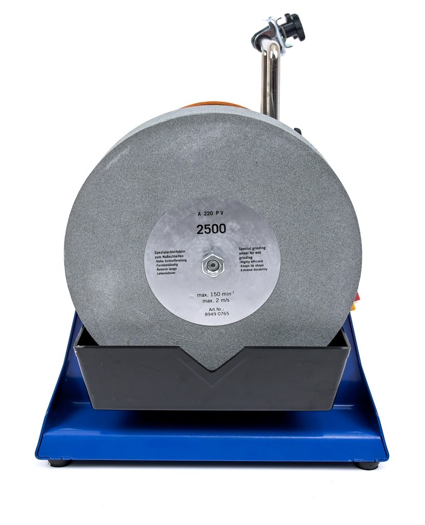 Speciální kámen s částečkami oxidu hliníku zajistí perfektní naostření nástroje, včetně nástrojů z tvrdokovu. Mikrootřepy pak dokonale vyhladí výměnný kožený honovací kotouč. Součástí je i nárazuvzdorná vanička na vodu.