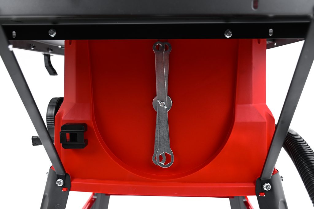 Součástí dodávky je držák pro přibalený nástroj na výměnu pilového kotouče.