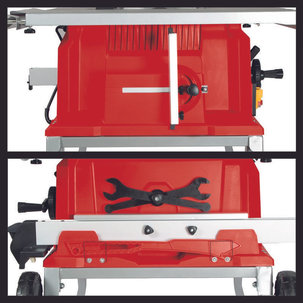 Díky možnosti nastavení výšky a úhlu pilového kotouče můžete snadno přizpůsobit řezání svým potřebám. Paralelní doraz s upevňovacími prvky na obou stranách a příčný doraz s úhlovou stupnicí pro pokosové řezy zaručují maximální přesnost.