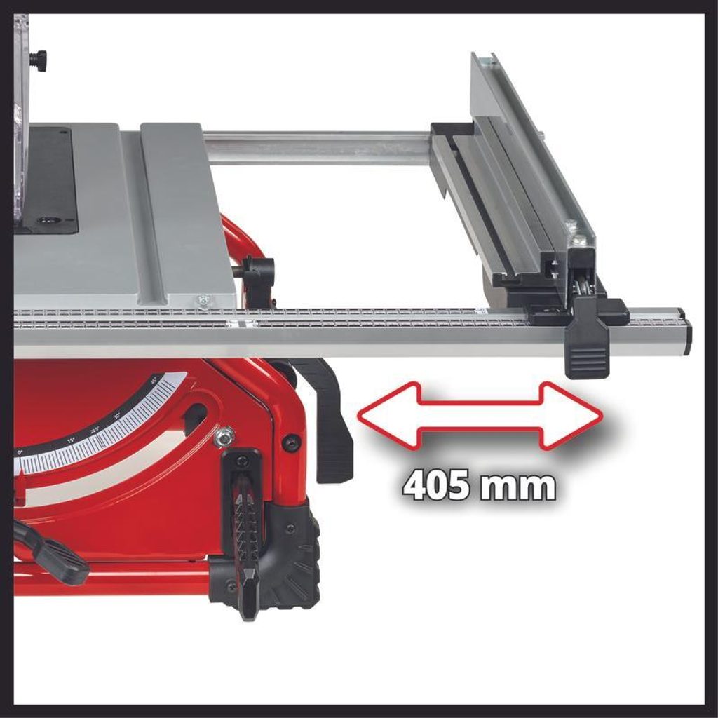 Pro přesné vedení materiálu je pila vybavena paralelním dorazem s excentrickým upínáním a také úhlovým dorazem s rozsahem ±60°. Tyto prvky umožňují jistější vedení obrobku a pomáhají dosáhnout přesných podélných i úhlových řezů při různých typech práce.