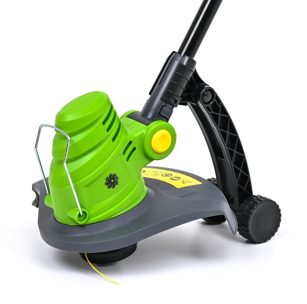 Elektrická strunová sekačka o příkonu 0,5 kW a se šířkou sečení 30 cm. Žací hlava je osazena dvěma strunami, díky nimž dosahuje záběru sečení 300 mm.