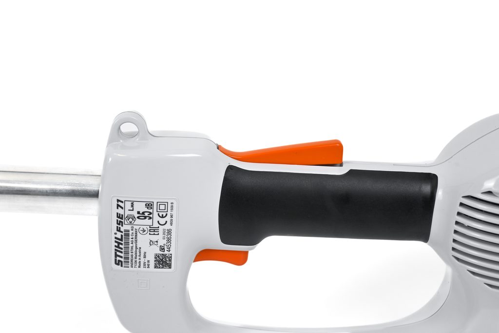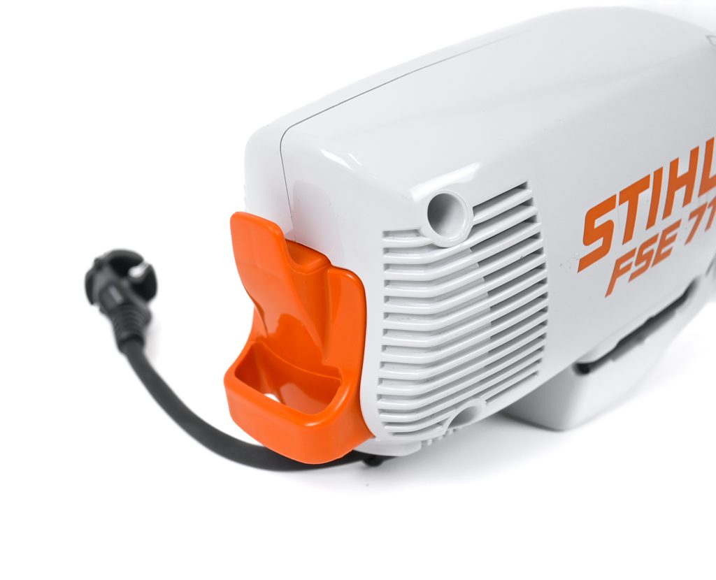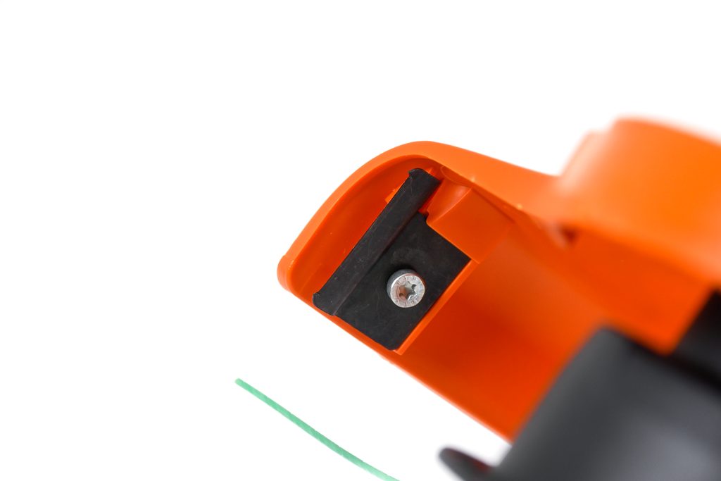 Další praktickou funkcí je distanční pomůcka, konkrétně distanční oblouk, který chrání kůru stromů a rostliny před poškozením, protože žací struna neseká nad nastavenou polohu. Pro bezpečnost při práci je sekačka vybavena zařízením na odlehčení tahu kabelu, které zajišťuje, aby se zástrčka nevytrhla ze zásuvky při tahání kabelu za sebou. Tím je zaručena plynulost práce bez nechtěného přerušení.