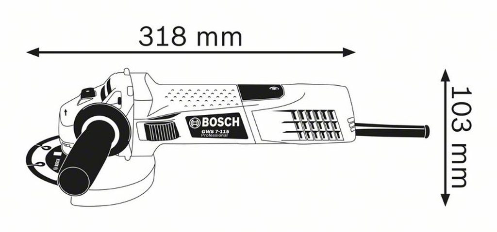 Úhlová bruska Bosch GWS 7-115 Professional má nejmenší obvod rukojeti při velkém výkonu 720 W. Nejmenší obvod rukojeti (176 mm) ve srovnání s ostatními úhlovými bruskami v této wattové třídě pro mimořádně příjemnou práci.