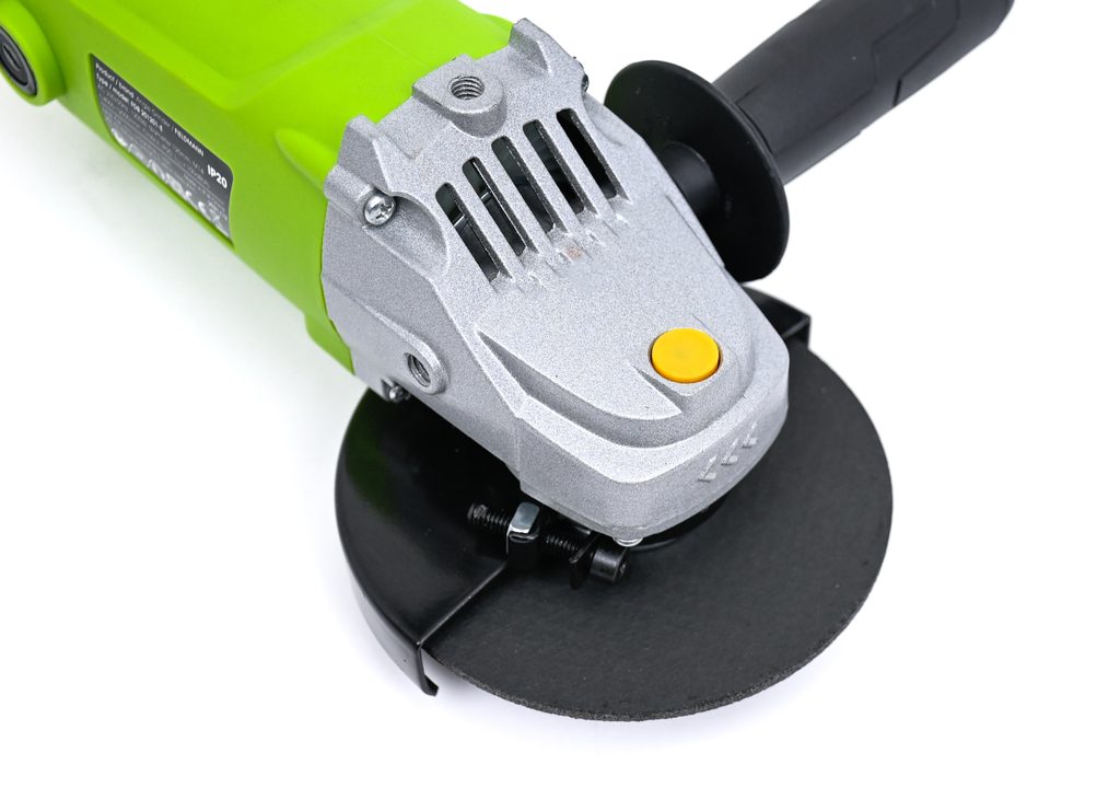 Součástí brusky je ergonomická rukojeť, kterou lze lehce přišroubovat na tři různá místa na hlavě brusky a tím docílit snadného řezání či broušení v akčním úhlu 180°. Dostatečná síla motoru a až 12000 otáček za minutu si hravě poradí i s tvrdšími materiály.