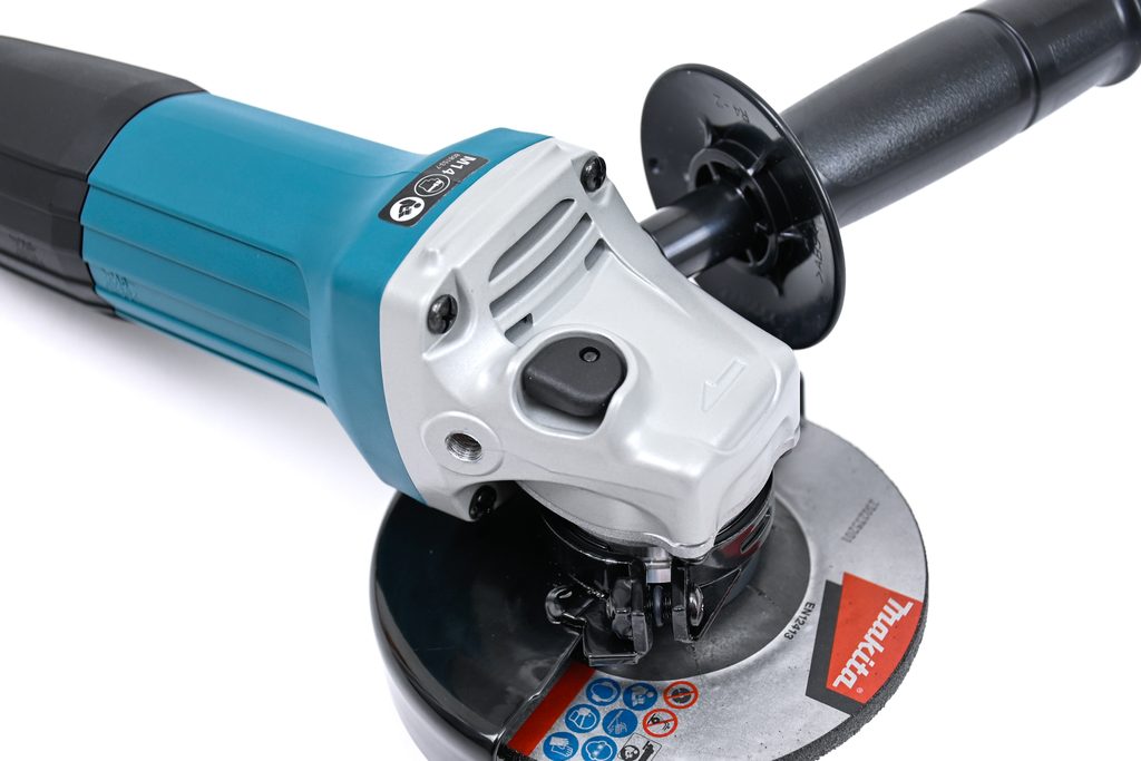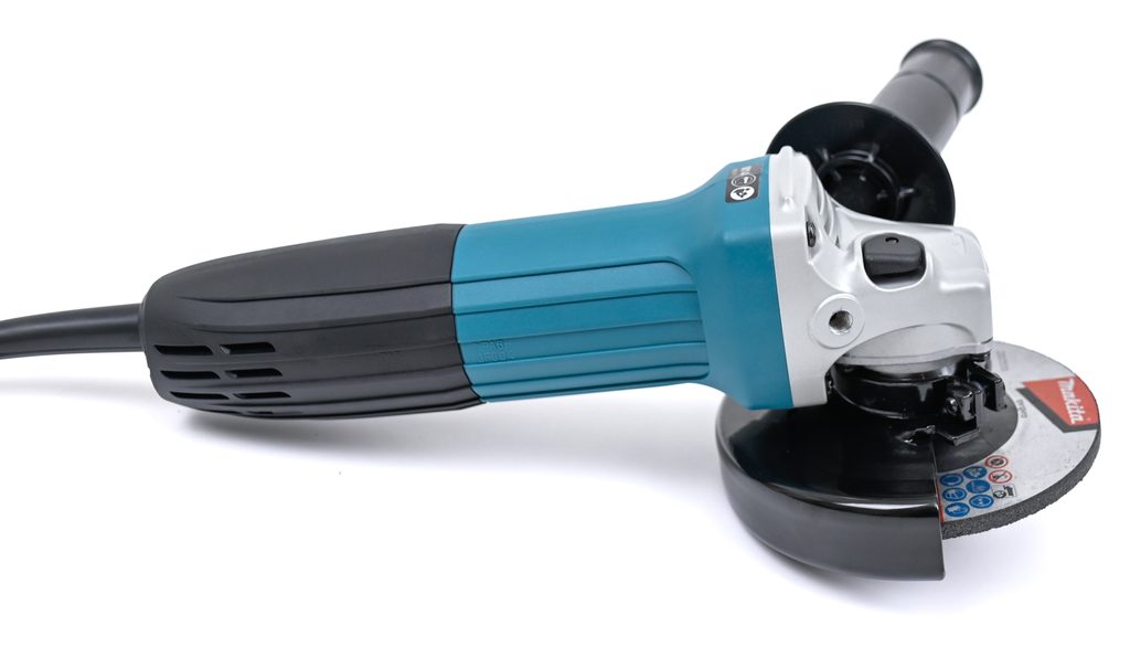 Makita GA4530R je také navržena s důrazem na pohodlí uživatele. Její velmi štíhlý obal stroje umožňuje pohodlné držení a manipulaci, což zlepšuje kontrolu nad nářadím a umožňuje přesnější práci. Ergonomicky tvarovaný kryt úhlové brusky je přizpůsoben tak, aby co nejlépe vyhovoval rukám uživatele a zvyšoval pohodlí při práci.