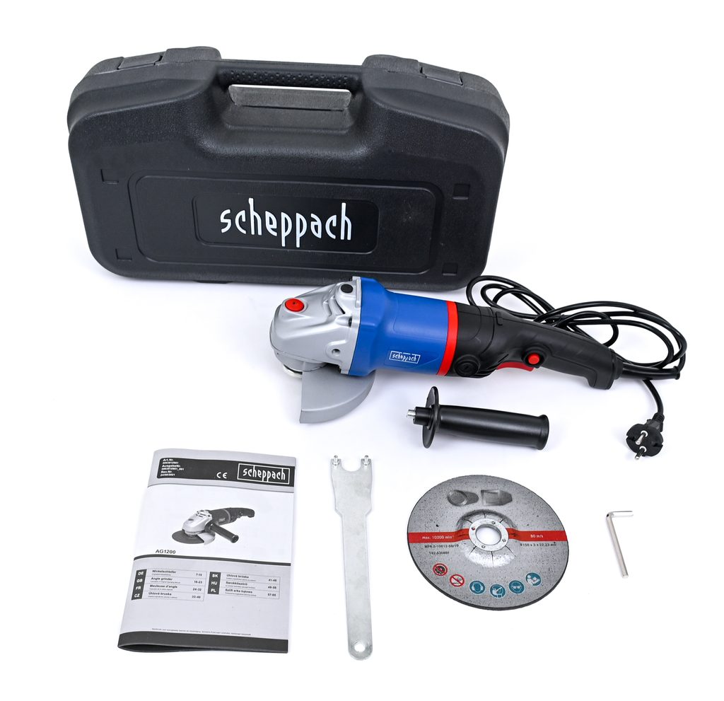 Elektrická úhlová bruska Scheppach je výkonná úhlová bruska s kotoučem 150 mm, vhodná pro všechny běžné typy řezání a broušení, odstraňování barvy a rzi, zabrušování svárů, začišťování hran, řezání kamene, obkladů apod. Silný motor má výkon 1200 W a je vybaven kvalitním měděným vinutím.