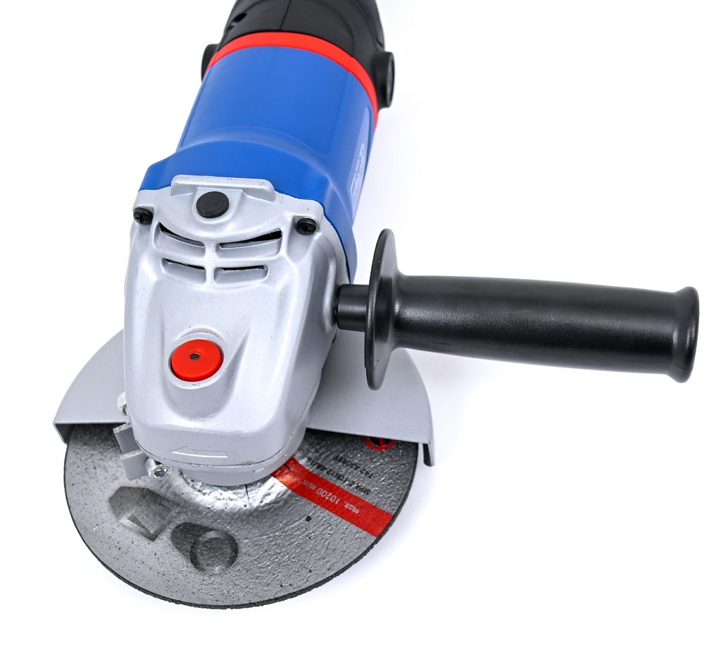 Bruska má odolnou kovovou převodovkou, která zajišťuje vysoký točivý moment, rukojeť, kterou lze nastavit do třech různých poloh podle typu práce (vhodná pro praváky i leváky), dále snadno nastavitelný kryt kotouče bez použití nářadí, aretaci vřetene pro snadnou výměnu kotouče a velký spínač pro pohodlnou práci.