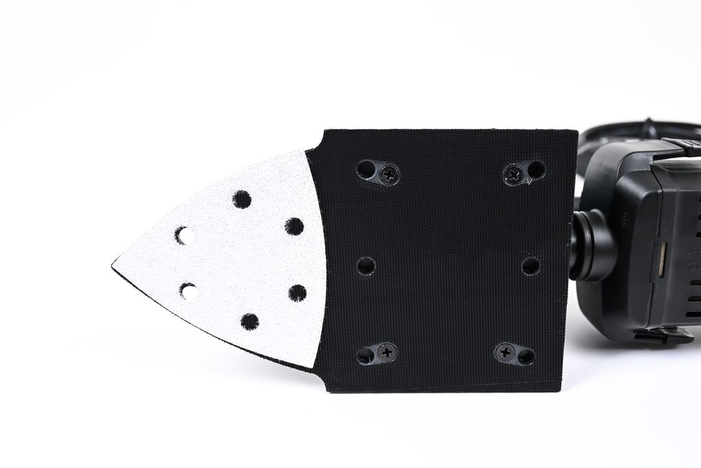 Velmi lehká vibrační bruska s prodlouženou trojúhelníkovou základnou. Pevná hliníková základna snižuje hlučnost a zajišťuje delší životnost. Výkonné odsávání zajišťuje 6 otvorů v základně. Bruska má ergonomicky tvarovanou pogumovanou rukojeť pro bezpečné ovládání jednou rukou. Suchý zip umožňuje rychlou výměnu papíru.