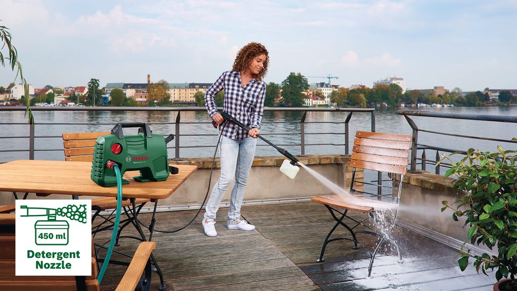 Elektrický vysokotlaký čistič nabízí kompaktní, rychlé a účinné čištění bez námahy. Nastavitelná tryska od silného proudu až po jemné oplachování. Snadno se vypořádá s menšími až středně náročnými čistícími úkoly.