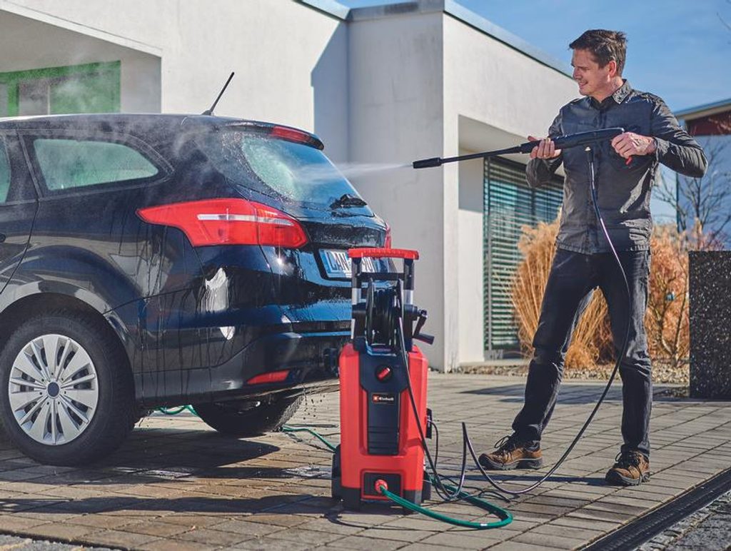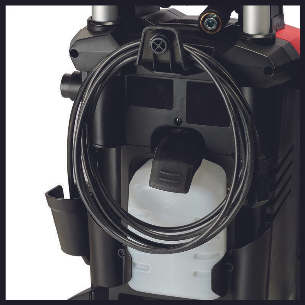 Tlak a síla vodního proudu jsou regulovány tryskami. Tlakovou hadici lze pohodlně skladovat na navíječce. Nádržka na čisticí prostředek je integrována.