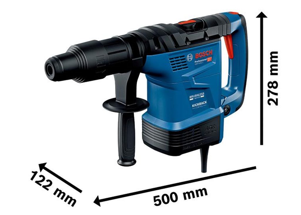 Elektrické kombinované kladivo Bosch GBH 6-42C 0611278020 bylo navrženo s důrazem na bezpečnost uživatele. Ochranu zajišťuje bezpečnostní spojka spolu s pokročilými funkcemi, jako jsou KickBack Control a Vibration Control. Rukojeť tlumící vibrace výrazně snižuje únavu i při dlouhodobé práci.