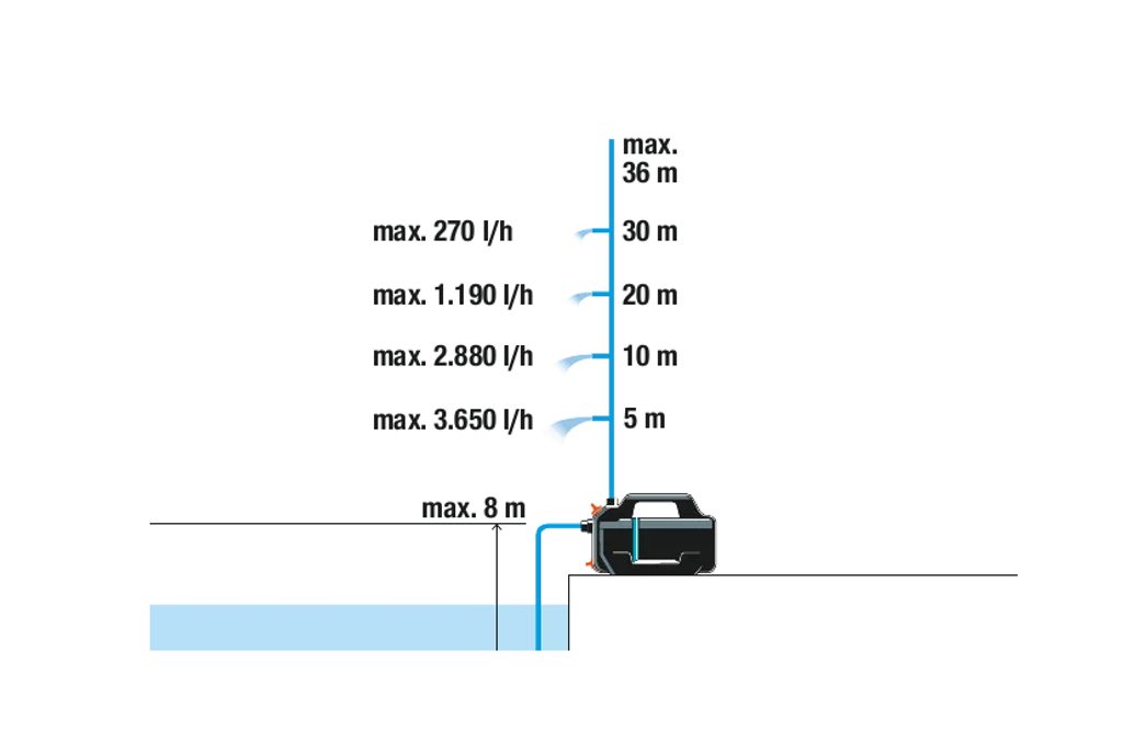 Elektrické povrchové čerpadlo Gardena 4100 Silent patří do skupiny výkonných, efektivních a energeticky úsporných čerpadel od značky GARDENA. Toto čerpadlo spotřebovává pouhých 550 wattů energie a díky účinné hydraulice dosahuje průtoku až 4100 litrů za hodinu při dopravní výšce 36 metrů (3,6 bar). Je proto perfektní pro zavlažování zahrady, čerpání kohoutkové nebo dešťové vody či vypouštění bazénu. Čerpadlo dokáže čerpat vodu z hloubky až 8 metrů, což z něj činí univerzální a flexibilní nástroj pro různé účely.