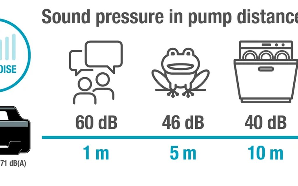 Velkou předností je nízká hlučnost. Tichá technologie dosahuje přibližně 60 dB ve vzdálenosti 1 m a zhruba 40 dB ve vzdálenosti 10 m, takže je při provozu jen minimálně rušivé a v praxi „sotva slyšitelné“.