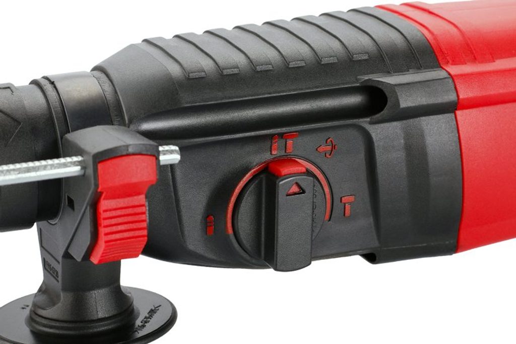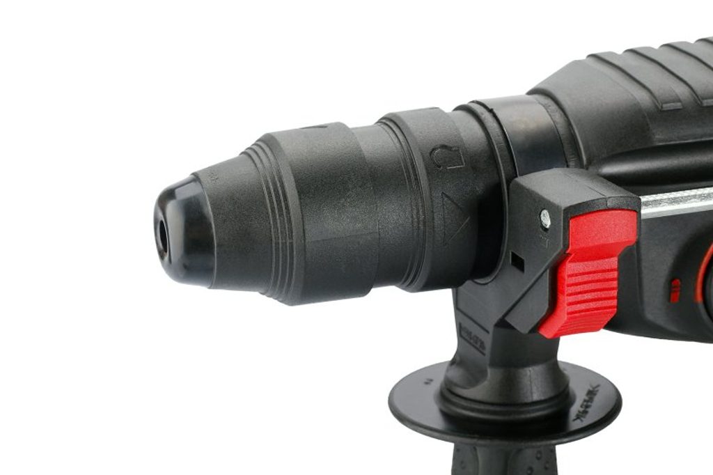 Tento model je vybaven sklíčidlem SDS+ a rychlovýměnnou hlavou pro vrtáky s válcovou stopkou. Kladivo nabízí vysoké otáčky a počet úderů za minutu, což zajišťuje rychlé a efektivní vrtání a sekání. Maximální průměr vrtání je vhodný pro práci s betonem, dřevem i kovy.