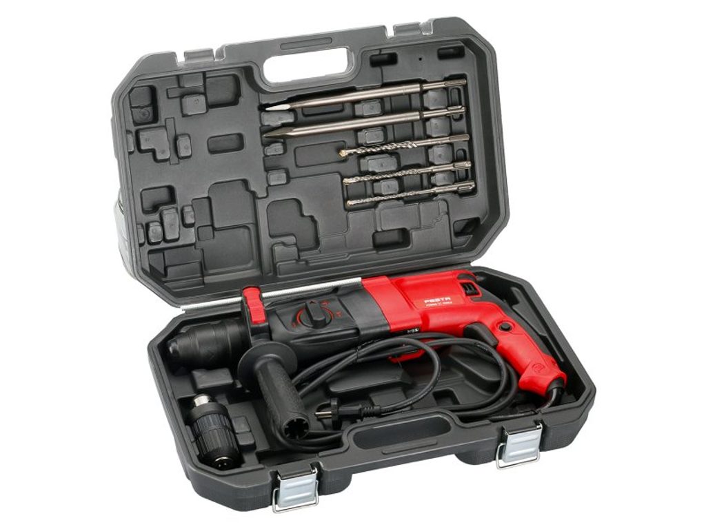 Elektrické vrtací kladivo FESTA 28220 je výkonný nástroj s výkonem, který umožňuje tři funkce: vrtání, vrtání s příklepem a sekání. Kladivo je navrženo pro efektivní práci s tvrdými materiály díky silnému úderu.
