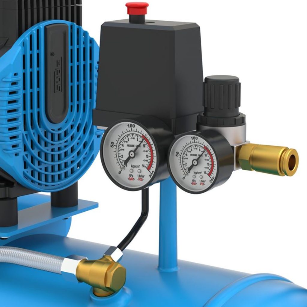 Konstrukce kompresoru zahrnuje indukční motor o výkonu 1,68 kW (2 800 otáček za minutu) s typem provozu S3/60 %. Je vybaven dvouválcovým samomazným agregátem s přímým pohonem. Díky technologii SILENT nabízí účinné tlumení hlučnosti a vibrací elektromotoru i agregátu, což je zajištěno pomocí silentbloků.