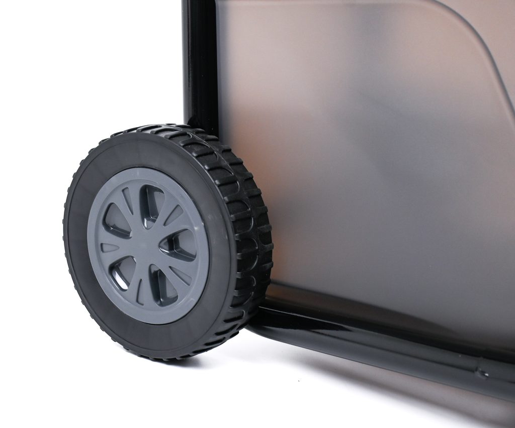Jeho stabilní konstrukce je vybavena velkými XL kolečky, což usnadňuje manipulaci a přesun drtiče po zahradě. Průhledný sběrný box je navíc opatřen bezpečnostními prvky, které zajišťují optimální ochranu obsluhy, a bezpečnostním zámkem sběrného koše.