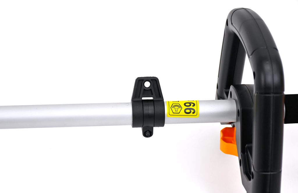 Křovinořez disponuje silným motorem uloženým vzadu, tím je docíleno perfektní vyvážení stroje. Při práci se strunovou hlavou se může kryt nože jednoduše rozšířit o další část, čímž je zajištěna dokonalá ochrana před odletující trávou.