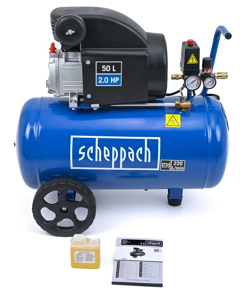 Výkonný kompresor Scheppach HC 54 je ideálním pomocníkem do každé domácí dílny nebo garáže. Díky velkému vzdušníku o objemu 50 litrů se jedná o výkonného a mnohostranného pomocníka.