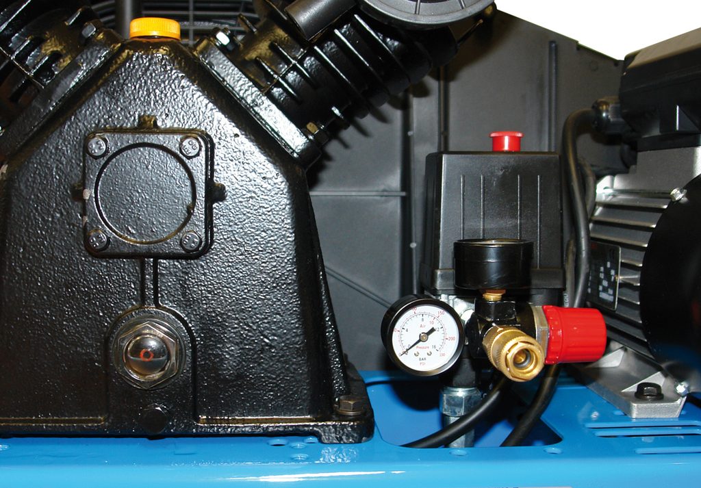 Kompresor střední výkonové třídy, určený pro použití v servisních nebo řemeslnických dílnách.