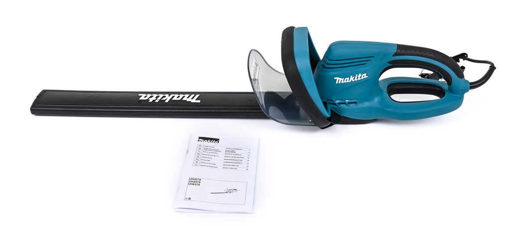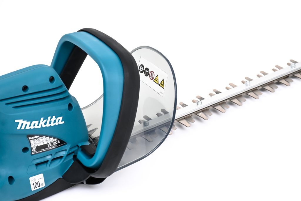 Makita UH5570 je vybaven ergonomicky tvarovanou a pogumovanou protiskluzovou rukojetí, díky které vám plotostřih perfektně padne do ruky a zajistí maximální komfort i při delší práci. Pro bezpečnost uživatele zde najdete hned tři vypínače – stroj funguje pouze při současném stisknutí dvou z nich, čímž je minimalizováno riziko nechtěného spuštění. Oboustranné nože se speciální povrchovou úpravou garantují dlouhou životnost a přesné stříhání větví.