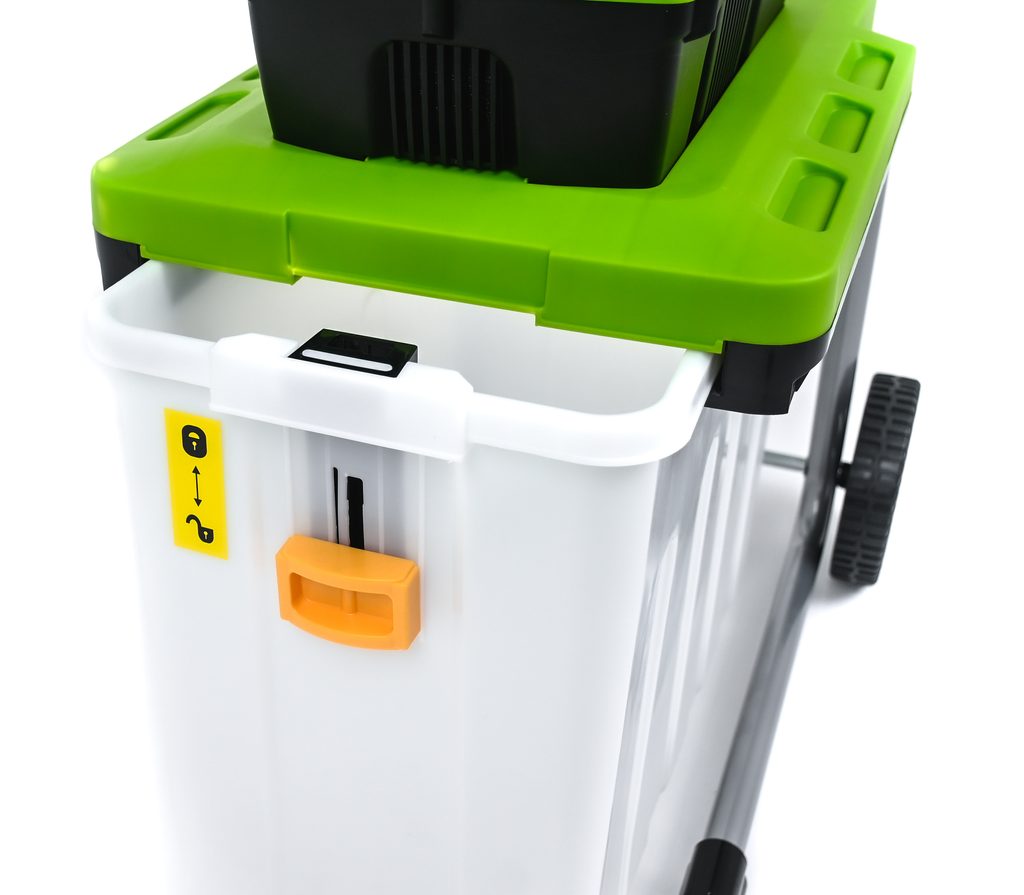 Součásti štěpkovačky je záchytná nádoba o objemu 60 l, díky které udržíte pracovní místo v čistotě a ulehčí i manipulaci se štěpkou.