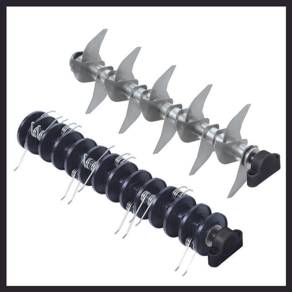 Díky 20 nožům z nerezové oceli si nožový válec s kuličkovými ložisky velmi účinně poradí s plevelem a mechem včetně kořínků. Provzdušňovací válec, který je rovněž uložený v kuličkových ložiscích, pomocí 26 per dosáhne profesionálního provzdušnění půdy.