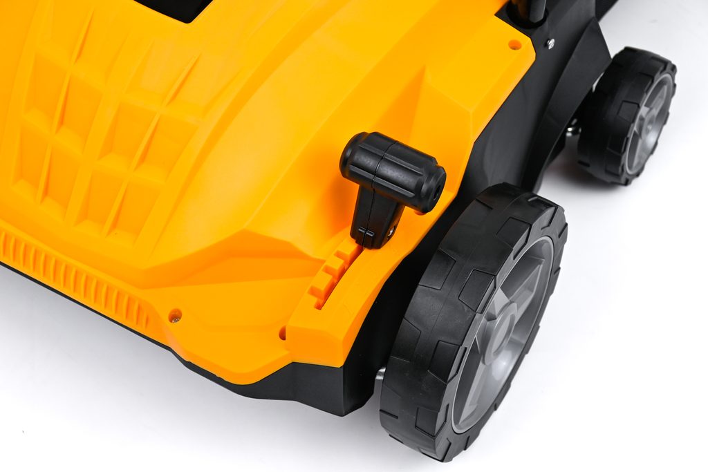 V případě, že se na pozemku nachází nerovný nebo svažitý povrch, pomohou vám ke snadnějšímu pojezdu s vertikutátorem velká přední kola.