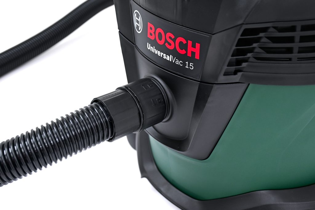 Multifunkční vysavač Bosch UniversalVac 15 lze snadno a rychle připojit k jakémukoli nářadí Bosch pomocí přiloženého nástavce a zajistit tak optimální pracovní podmínky bez prachu z řezání, broušení nebo frézování. Kromě toho zajišťuje delší životnost pracovních nástrojů a příslušenství tím, že zabraňuje usazování jemných prachových částic v elektrických a mechanických částech pracovních nástrojů.