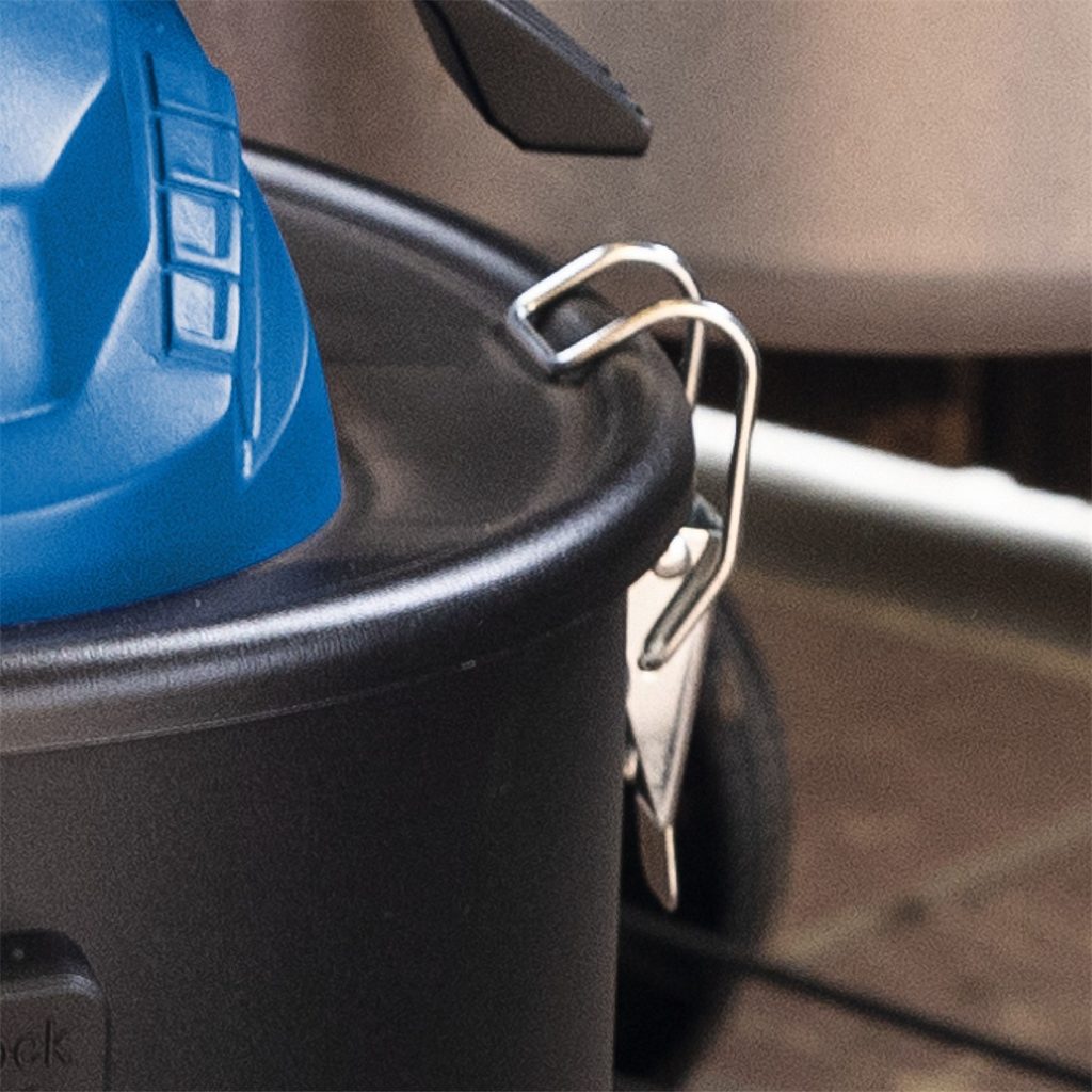 Praktická sběrná nádoba o objemu 20 litrů umožňuje delší práci bez častého vyprazdňování, které je navíc snadné díky rychloupínacím uzávěrům. Komfort při používání podporuje také nehořlavá odsávací hadice o délce 150 cm, která je vhodná i pro práci s popelem. Přehledné uložení vybavení usnadňuje držák příslušenství.