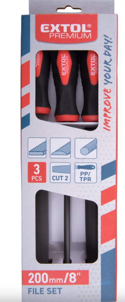 Pilník EXTOL PREMIUM 200 mm sada 3 ks 8803610