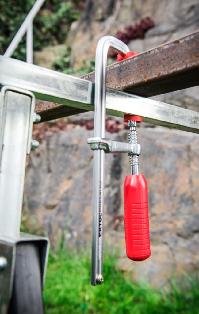 Svěrka je vybavena pozvolným závitem s lehkým chodem, který zabraňuje vzpříčení během utahování. Tříhranná plastová rukojeť je ergonomicky tvarovaná pro pohodlné držení a snadné dotahování.