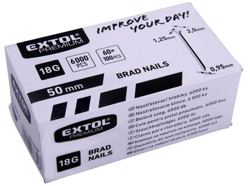 Nastřelovací hřebíky EXTOL PREMIUM 8862619 jsou tou pravou volbou pro profesionální i domácí použití. Díky kvalitnímu zpracování a pozinkované povrchové úpravě zajišťují dlouhou životnost a odolnost vůči korozi, takže se na ně můžete spolehnout nejen v interiéru, ale i při práci venku.