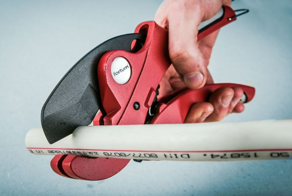 Profesionální nůžky na plastové trubky FORTUM jsou určeny pro řezání plastových trubek o průměru 0-42 mm. Jejich hlavní předností je speciálně tvarovaný trojúhelníkový břit, který je potažený teflonem pro snadnější a plynulejší pronikání materiálem.
