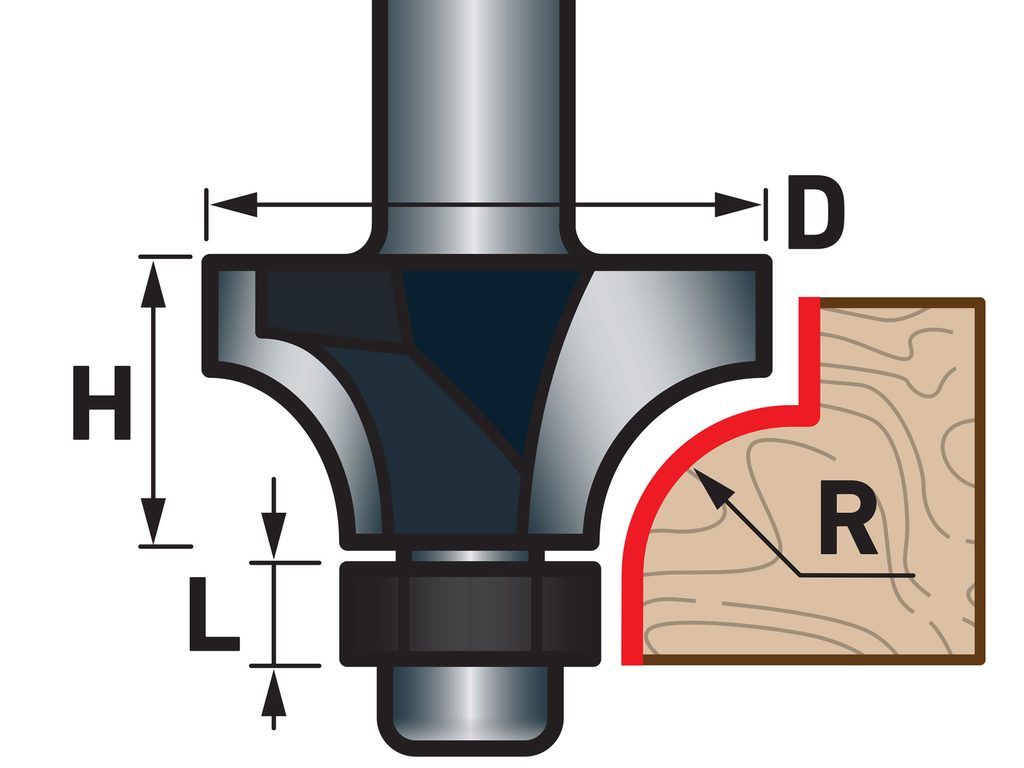 Zaoblovací fréza pro dřevěné materiály, stopka 8 mm.